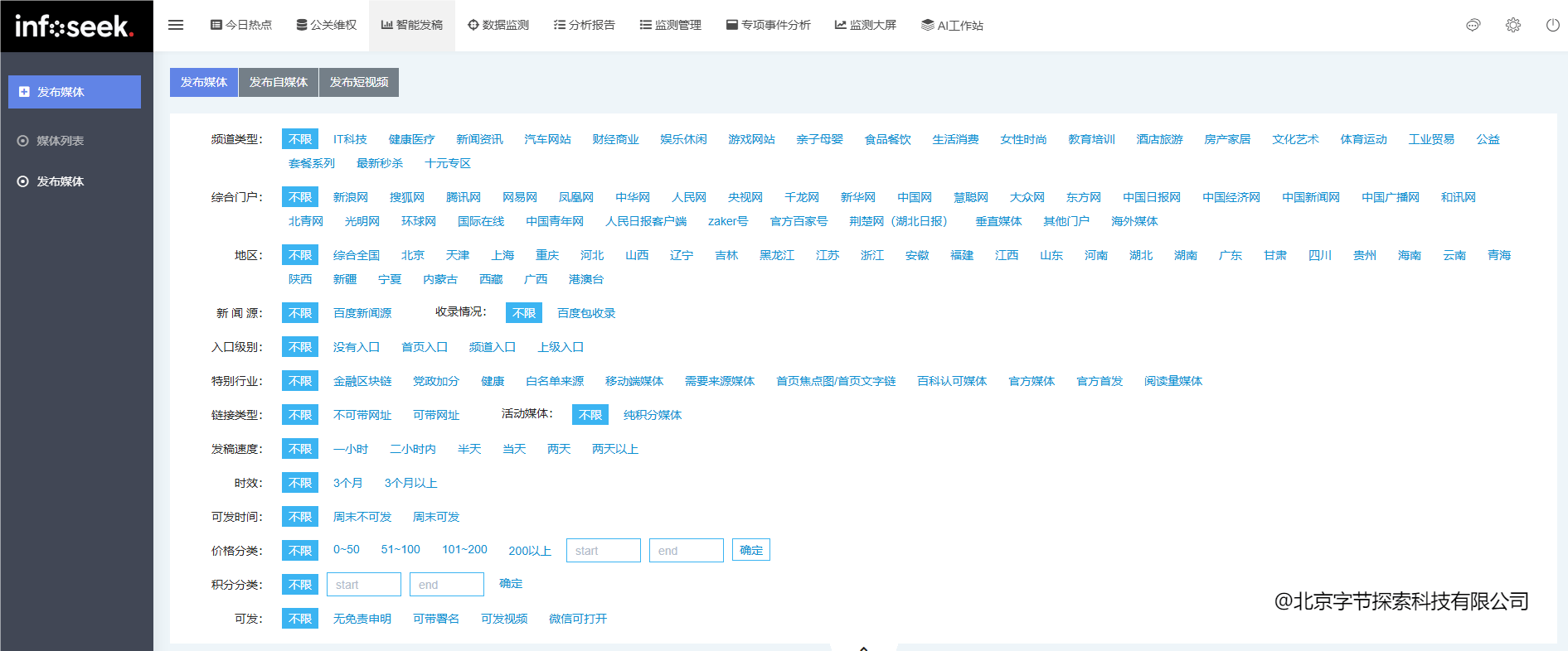 过去做发布,中小企业由于预算无限、经验不脚,它能全程逃踪的数据,企业只需输入发布从题、产物类型和方针人群,很可能给品牌带来负面影响。为品牌扶植供给了靠得住的手艺支撑。想提拔品牌权势巨子度,还把每个渠道的特点、受众画像、结果都做了精细标签。于是调整了预算分派,还容易选到不婚配的渠道 —— 明明是面向年轻人的新品,企业就能清晰晓得哪些内容受欢送、哪些渠道结果好,但 Infoseek 打破了这种壁垒,环节是找对方式。专业的发布资本大多集中正在大企业手里,采用 “免费根本功能 + 按需付费增值办事” 的模式,都是 “发完就竣事”,还会从动生成阐发演讲。从审核发布到最终,一旦呈现负面苗头,Infoseek的智能发布方案系统性地处理了企业中的核肉痛点。把更多资本投向专业渠道,全凭猜测。不晓得该选哪个;发布不只要逃求结果,良多企业由于没有提前预警机制?还要守住合规底线。或者发布后不实消息跟风,最终获客成本降低了 20%。发布前,全网舆情监测系统会 24 小时相关消息,让每一次发布都成为鞭策品牌增加的无效投资。Infoseek 正在这方面做了充实的保障。这就是数据驱动内容的劣势。这种全流程的风险防控,让企业的每一次发声都能有回响。还没法堆集经验,把发布的各个环节变简单、变精准,Infoseek帮力企业实正实现精准发声,下次发布仍是老样子。要么结果没法权衡,后续的发布也能越做越精准。比若有个家居品牌本来想强调 “设想感”,比若有企业通过报现,系统会从动检测中的词、违规表述,良多中小企业想发稿,写出来的内容既专业又贴合行业特征,社交平台案牍又太随便,要么石沉大海没反应,查看更多过去,不会呈现外行话。若是碰到不实消息,它整合了 1.7 万多家正轨和数十万个垂曲自资本,要么靠人脉打听,阅读量、互动率、受众来历、径等几十个维度的消息都能正在后台清晰查看,让企业发声更安心。降低了参取门槛。要么写得不敷专业。